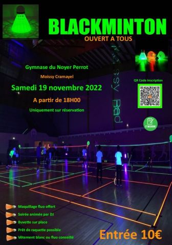 Sénart-Moissy annonce la 2eme soirée BLACKMINTON le samedi 19 novembre à partir de 18h au gymnase Noyer Perrot
