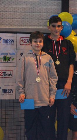 Et de 2 !  pour Aymeric Tores qui remporte de nouveau cette saison un Trophée d'Ile de France en double homme minime associé à Gabin Boussonge (Pontault)  A cela s'ajoute une place de demi finaliste en simple homme.  Idem pour Maxime Merceret qui se hissera lui aussi en demi finale du simple homme minime.